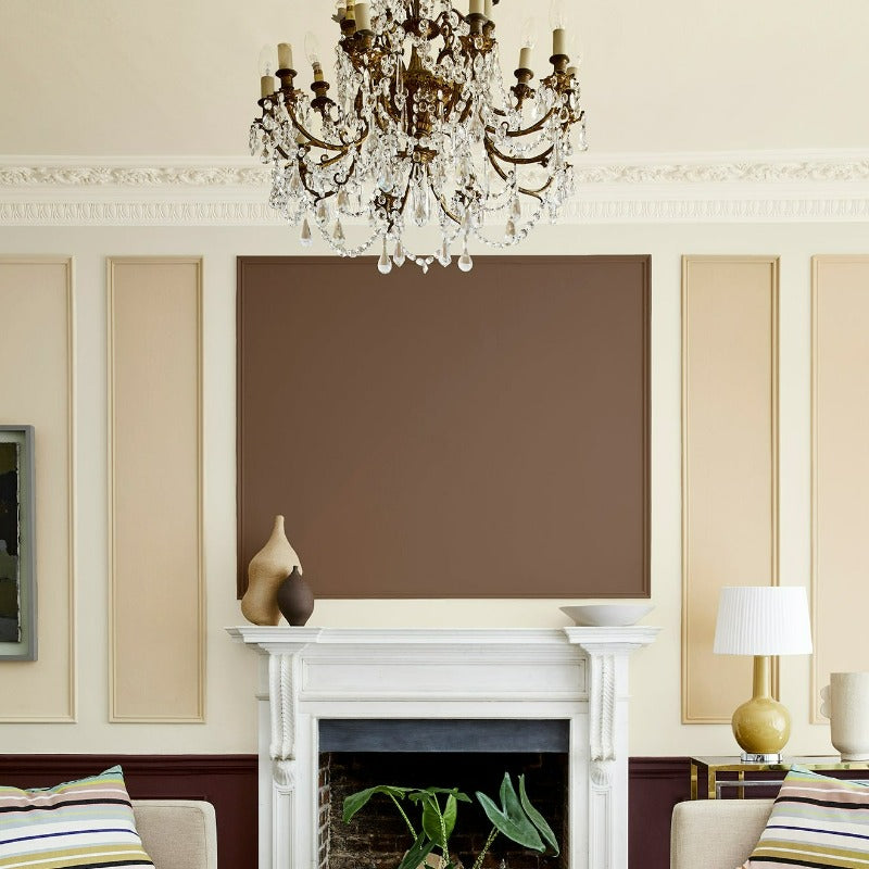 Little Greene Scullery No. 318 is a dark, rich brown paint colour. Brown living room paint colour. Buy Little Greene paint online.