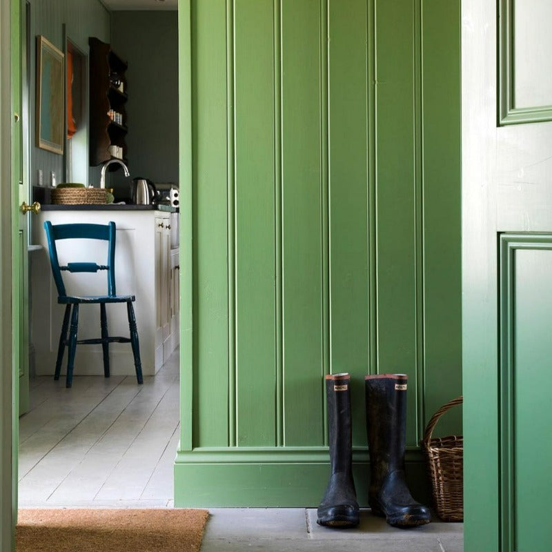 Saxon Green No. 80 from Farrow & Ball is a light traditional green paint colour. With a little more yellow than Breakfast Room Green, and less intensity than Yeabridge Green, Saxon Green has a traditional feel and a soft, lived-in quality. Pairs beautifully with Dix Blue and Nancy's Blushes.