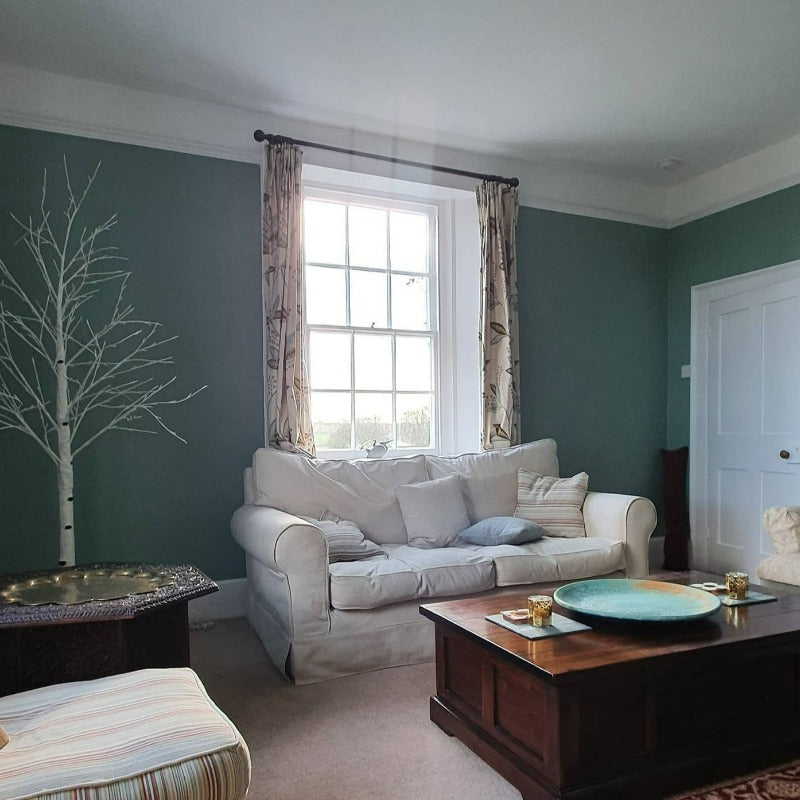 Little Greene Aquamarine Deep No. 198 green paint colour for a living room. Buy Little Greene Aquamarine Deep paint online in Ireland.