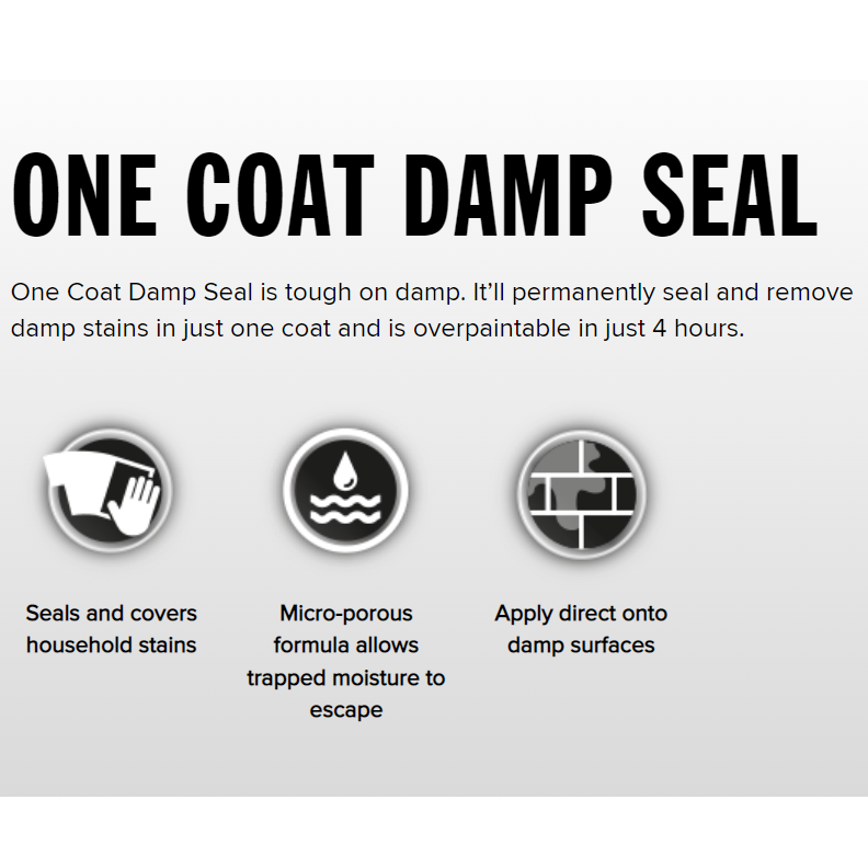 Nadaj uszczelce Thompsons One Coat Damp Seal naprawdę dobre zamieszanie. Nakładać pędzlem lub wałkiem. Nałóż farbę na dotknięty obszar, plus około 30 cm wokół niego.